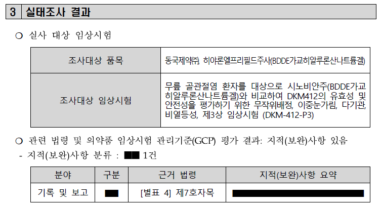 (품목) 동국제약㈜, 히야론엘프리필드주사(BDDE가교히알루론산나트륨겔)-의뢰자 (CRO: 사이넥스) (0) | 2024.09.23 |